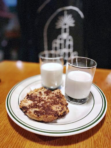 Dessert was as milk and cookie ($3): how nostalgic! The chocolate chip & walnut cookie was WARM and not too sweet - soooo good dipped into milk with each bite.