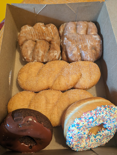Inside the restaurant, it was relatively quiet with only one other patron besides myself. This allowed for a peaceful and calm environment to focus on work. On the bright side, the donuts were fully stocked, which was a welcome sight for any donut lover.
