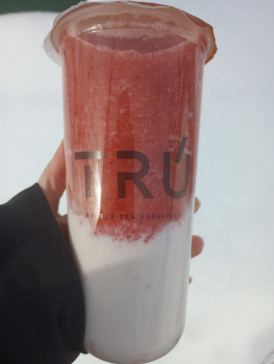 I got the Strawberry Trupioca and it was good but too sweet for me. I asked for no sugar, but it was still so sweet, lol. It's a strawberry slushy on top of a layer of milk with "Trupioca" which is like agar bubbles. They were springy and delicious.