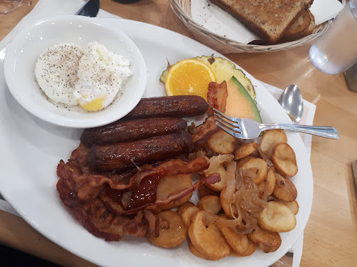 should the Healthy Breakfast ($ 12.75) sound appealing to you, you could always consider the Fresh Fruit and Eggs as an alternative choice. For the same price, you get essentially the same meal EXCEPT the former has one poached egg and cottage cheese while the latter has two eggs that are prepared any style - so, presumably you can order poached eggs if that's what you prefer