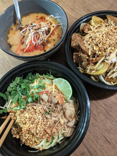 My favourite dishes are the Peanut Satay Tofu Soup (!omg so good!) and the Papaya Salad (!!!!!!!!!do not skip this dish!!!!!!). I usually get those two and a main dish that's vegetarian friendly. EDIT: i forgot about the mochi! It's filled with nuts and shredded coconut and is just soo soft, warm and delicious. That reminds me: this place is great for vegetarians and vegans! Everything is clearly labelled veg safe vs. not, and they have a lotttt of options as a vegetarian which makes me very happy. Also they have alternative proteins than just your standard tofu which is appreciated for variety! Portions are very big for me since I get multiple items, so I always have leftovers which is a big plus.
