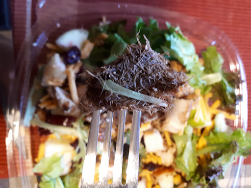 I explained the situation and showed her the thing in the one salad. She told me she could only refund 2 salads but not the eaten one. I repeated how my partner was gagging off and on all evening because of the thought of having eaten from the same batch as that thing. She still said no after I tried to reason with her.
