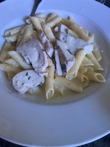 Sun-dried tomato and mushroom pasta-we opted for penne instead of the linguine. Easy to change out pastas. The sauce was good, mushrooms seemed fresh, and paired well with the pasta. The pasta is made in-house, however, they were very thick.