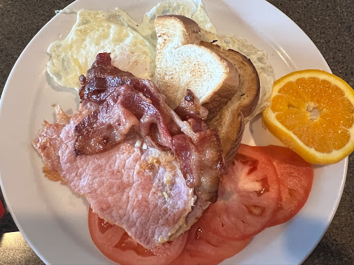 Toast is actually just one piece of bread sliced in half. This was a downgrade from last year. At least give two as you’re pricing has gone up to accommodate inflation. The eggs are basic, small eggs. It’s fine. The bacon quality could be better, at times over done. To change from bacon to sausage, ham or peameal it’s ironically more money. I wonder about the grade of the bacon. Not a big deal again as its not going to break the bank.