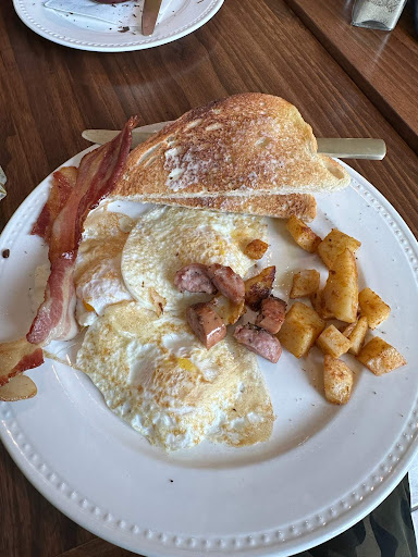 Read moreWe heard breakfast at Oakcrest is delicious and hoped to enjoy it after Sunday church. We dropped in after 11am service only to discover they have a strict policy of not serving breakfast after noon hour. It wasnât long before someone came to our table with lunch menus and we ordered coffee. She did not ask us what kind of coffee we preferred and then took so long to bring the coffee that we almost left. It wasnât busy (no more than 3 other tables occupied when we arrived at noon) and we felt the delivery of our coffee was a low priority. When it finally arrived, the coffee was delicious! And a nice big cup. The rest of our time there improved as far as the attention we received from our waitress. However, when she returned to take our order, we were disappointed to find they were already sold out of pulled pork. She had to give us a bit more time to choose other items on the menu as I had wanted the pulled pork flatbread, and my husband was hoping for the macaroni and cheese with pulled pork. To my dismay, there were no items on the menu with red meat. If you like chicken or turkey, you would find no problem finding some thing that sounded delicious but I was at a bit of a loss because Iâm really not a poultry person. I ended up getting a chicken tacos sandwich which admittedly was tasty and my husband enjoyed his turkey club. We both upgraded to the soup of the day, which was a very delicious mushroom leek cream soup! All in all a very tasty lunch, despite the disappointments. A final suggestion for the restaurant is that no one offered us a top up to our coffee. Iâm not sure if we wouldâve been charged for a 2nd cup or if it wouldâve been complementary but I think we should at least have been asked if we wanted more coffee. Iâm uncertain if we will ever return due to the excessive amount of poultry on the menu. It was awfully early in the day to be out of the pork and I am certain there are a lot of diners who feel that you canât beat roast beef or a good steak sandwich. My husband loves chicken, but heâs like a lot of Parry Sound men who feel the prices are high for a chicken...