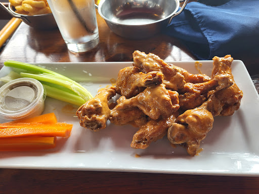 Our server was lovely, but the manager on staff (a shorter, red haired woman) was appalling. My order was 20 wings, their wine flight, and their beer flight. The wings I ordered were 10 in a steak spice, and 10 in honey garlic. Once the food arrived, I noticed the honey garlic wings were made using large chunks of chopped onion. Unfortunately our server was being run ragged and took off before I could say anything.