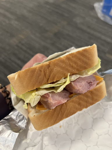 Excellent service at the Penticton Airport! I think they should advertise that the food and drinks can be delivered past security more prominently. Many people were eyeing my coffee and sandwich delivery. Coffee was good and the ham sandwich was amazing! Definitely was a way better than anticipated. Check out the photo!! There’s real ham in there!! Atmosphere is not their fault, it’s an airport waiting...