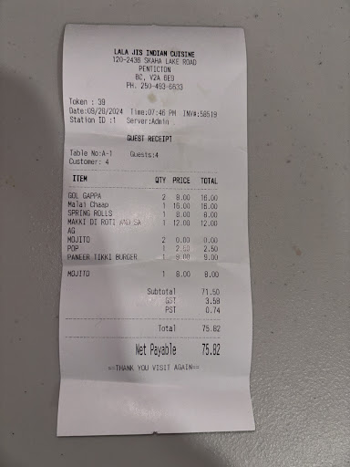 We were regular at Lalaji’s and would get take out from them at least twice a month. We always felt that the take out we got from them was always somewhat inferior to the food we would get during our dine-ins. My hubby ordered some of his favourite chole bhature, samosas and allo tiki burger today. The samosas were literally dunked in oil and it seemed as if they were fried twice. Just to give you an account for how oily it was: by accident, I left the samosa bag on my bed sheet and it left oil strains all over it. The bhaturas were very dry and my hubby fet like they were mot fried at an appropriate temperature. The whole order was a disappointment and seemed as if an amateur had made it. Despite such a disappointing experience, my hubby gave them a call and they offered to make to bhaturas again to which he agreed. The call was made at around 3.30pm and we were yet to receive anything around 4.50 pm. At the end, we called them again and said we didn’t want the bhaturas anymore to which they replied “ok” and hung up. The main reason for this review isn’t the quality of food, but is the quality of customer service. On a side note: I don’t like to leave negative reviews especially for small businesses. However, with this review I wanted to express my concern and displeasure with the...