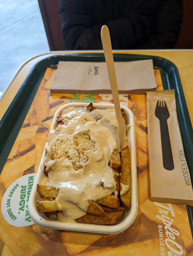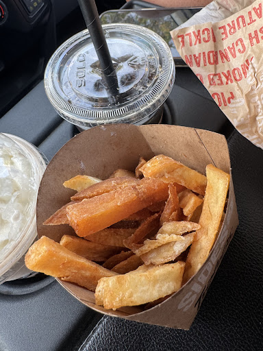 BEST BURGERS IN TOWN!!! This is a mini White Spot restaurant (quick service restaurant) that offers a few seats to dine in, but this is where I do the 'drive- thru' and I've got my order in 5 minutes or less, piping hot and tempting to eat in the car before I get on the way back home or to the beach or wherever dinner is planned.. I've eaten at both White Spot restaurants and I have to say, the burgers here are juicier and filled with Triple-0 sauce oozing from all sides. Always with their signature dill pickle slice on top. If you've never had a legendary burger with Triple-0 sauce, you're missing out! Do try! The deep-fried potato chips, whether regular potato or sweet potato, are delicious and crispy on the outside, tender inside. I cannot go here without ordering their classic deep-fried onion rings! Also the best in town--very thick cut and crispy--you won't be disappointed. They offer an array of burgers, single or platter to include fries and a drink of your choice. Add-ons, sides, the best hand-scooped milkshakes, and much more. The service is always friendly and knowledgeable. Indoor dining is limited but clean and lively, being situated on the corner of Eckhardt and Vees Drive with a gas station as well, so very busy in summer months. Location is prime and it's next to the Casino and all the entertainment venues, including the SOEC (South Okanagan Entertainment Center), hockey venues, the Aquatic Center, etc. Just minutes from the Okanagan Lake beach as well. You won't be disappointed!