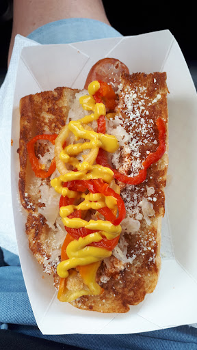 First time stopping here when the truck was open. Decided to try the Banger Trio. I found the potatoes to be a bit overcooked for me but great flavor. The star of the show was the Banger. Delicious sausage with a great snap. Put on all the appropriate toppings, saurcraut, mustard and hot peppers and you've got the perfect bite. The woman behind the grill was very friendly and we had a chat while getting the food ready. Four stars for atmosphere because it was a beautiful sunny afternoon and there are some very clean and weather protected picnic tables adjacent...