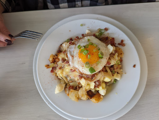 Read moreMy husband I just moved to the area over the summer and had been meaning to stop in for a while. We came for breakfast and it was phenominal, i'm pretty sure I skipped my way out the door when we were done I enjoyed it so much. I had the breakfast poutine and my husband had the Nashville benny. YES, you wait a little bit longer for your food. Was it worth it? YES! I will always wait longer for fresh food, made with care, over the fastest meal option (fast usually means pre-made and/or deepfried). The breakfast poutine, with curds, bacon, onions, hollandaise and onions, and sunnyside up egg, somehow did not taste greasy at all (the waitress told us everything is made to order on the grill, not deepfried). The Nashville benny had a generous sized piece of chicken, great bread, cheese, hollandaise and the homefries were great. Coffee was pretty decent and I loved that everything wasn't overly salty. All in all I will definitely be coming back. A note about seating: for me it is not abnormal/unheard of to wait until your whole group is there to be seated. The place isn't huge and its busy (for a reason, its delicious and they're making everything to order) seating half of your group to sit there (and not order) while they wait for the rest of their group, takes seating away from other...