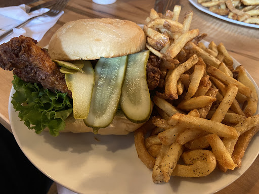 Read moreI had been looking forward to trying this place for months, since it is ranked amongst the top restaurants in Perth. The back patio area looks gorgeous and even whimsical and inside it feels rustic and welcoming with an exposed brick wall and art hung throughout. There were some pretty impressive cobwebs just above head level when seated, so the place could use a good clean in the indoor dining area. We visited, quite by accident, on the same evening as the town of Perth was hosting their night market, which may have contributed to the poor service. We saw our server only twice, when she took our order and when she checked on us, when she performed her table check she didn't wait for us to answer her before she was off to tend to another guest. The beet salad was nice, although, the salad was 99% spring greens. For example, there were only 2 sad wrinkly grape tomatoes in the entire salad. The burger was just okay, the bun was stale and we were overall not very impressed. The Nashville Hot chicken sandwich was a complete disappointment. The chicken was dry and clearly overdone, and the bun was also stale. Initially is seemed that they had not put any Nashville Hot sauce on the chicken but when we flagged someone down to ask for more, what they brought out was a very liquid sauce, more like a very thin au jus than anything I have seen on a Nashville Hot Chicken sandwich in the past. The flavours in the sauce were not what I had been expecting almost like they had mixed chilli powder with water, and it was not the salty, sweet and spicy sauce that is associated with that sandwich. Overall we were very disappointed with this visit, and surprised by the...