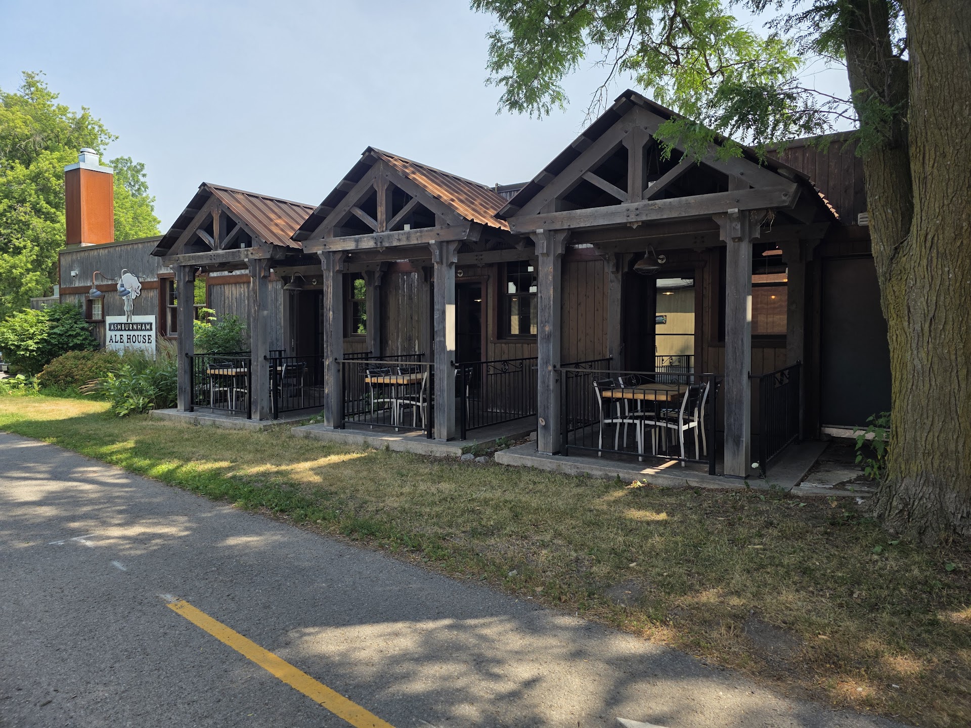 The Ashburnham is very popular with locals. There's always a good crowd when I show up. Note I've never been there for dinner or later so I never have a problem getting a table but the place is never empty. They've got three private patios on the west side of the building. These are fully shaded and allow you to watch traffic on the bike path.