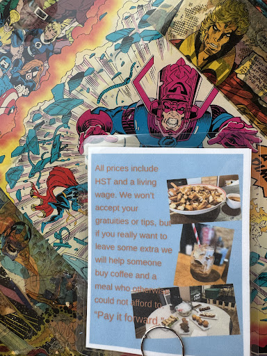 Right off the bat, I love that the cafe has a no tipping policy! This is refreshing and removes the pressure of tipping as a customer. The employees are apparently paid a living wage of $25/h which is great corporate social responsibility. There is a also pay-it-forward system which helps people who could not otherwise afford to buy some food.