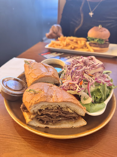 I got the Beef Dip Sandwich and oh my… 🤤. Shaved roast beef on a Vienna loaf with Jack cheese, crispy onions, and garlic aioli, served with a very flavourful “au jus” dip. At first glance, I was a bit worried that the beef might be dry, but a dip in the au jus took it to another level — rich, tasty, and paired perfectly with the sandwich.