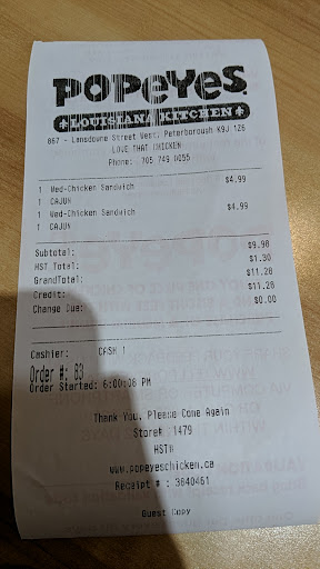 Read more0 stars, not 1, 0!!!! Popeyes website took my order for a 12pc family meal and charged my debit card at 6:40pm. I chose 7:10pm pickup time. After driving across town to arrive at the store at 7:08pm, I get an email from Popeyes saying there was a problem and they cancelled my order. 30 minutes after they took my money!