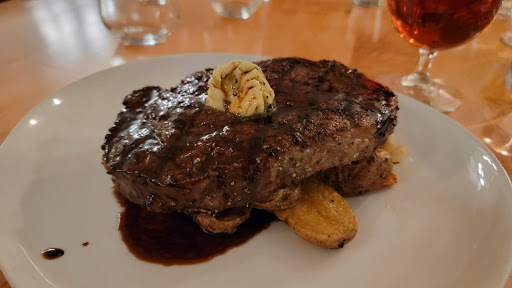 Once our entree was finished we waited for our steaks and to be honest it was quite the wait, I did not mind waiting since the ambience was pleasant and the waiters were checking on us from time to time. After 30 minutes or so our steaks arrived, once again presentation was amazing, both of the steaks were cooked exactly how we ordered them and my side of bone marrow tasted amazingly. Once I got to the steak I noticed a gravy looking sauce of top of the steak, even though it tasted good it was covering the taste of the rib eye. In my opinion a cut of meat like that should be served without any sauce in order to enjoy the full flavour. The steak was tasty and juicy but as I’ve read in other reviews it was indeed lacking some seasoning. Our steaks came with a side of vegetables but upon trying them they seemed more as decorations rather than part of the dish as they were not throughly cooked and tasted bland.