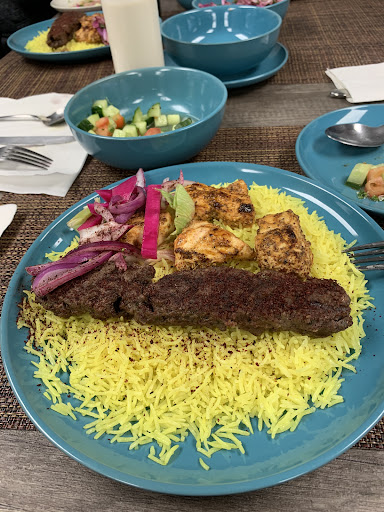 We had: Auran - a salty yoghurt drink Baba ghanoush (eggplant dip) with pita bread. So tasty and garlicky. Spicy Lamb Guss with Salad spicy lamb grilled and cooked with red onion and tomato and served with tossed salad and an cucumber/tomato/onion/parsley salad very tasty and a do over! Mix Lamb Kofta And Beef Kebab with Salad and rice grilled lamb kofta and beef kebab served with tossed salad and yellow spiced rice tender and juicy