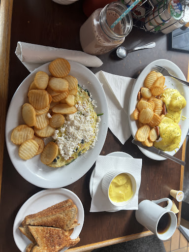 Read moreIt was a very warm, cozy place. Although the plates of other costumers who were ordering brunch and breakfast had perfect smell and very well design, I ordered hamburger as I'm not a brunch person. All I can say is that mushroom fried burger tastes like heaven, and I fall in love with the dollar chips and the Cesar sald as the side of the plate. My husband had breakfast, and he was totally satisfied with his plate that I couldn't remember its name but was bacon, sausage, and egg. And ohhhh, I forgot about the French toast with the homemade blueberry comput, which was awesome. Highly recommend, for sure it was a busy place with many costumers so there was a normal waiting time that I believe it worst it. And last but not least, the friendly atmosphere and their hospitality beside their fair prices will sure take me there...