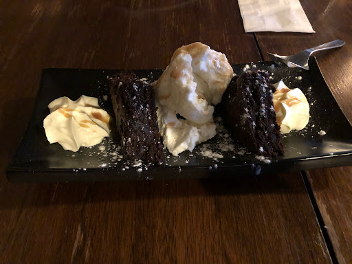 I chose the crumble for dessert and it … was not good at all. Cheap vanilla ice cream on top with what tasted like stale breakfast oatmeal (the crumble needs butter!!!) and unseasoned fruit (apple and canned peaches). DEFINITELY skip this. I saw someone else order a lemon meringue and it looked legit, so maybe try that.