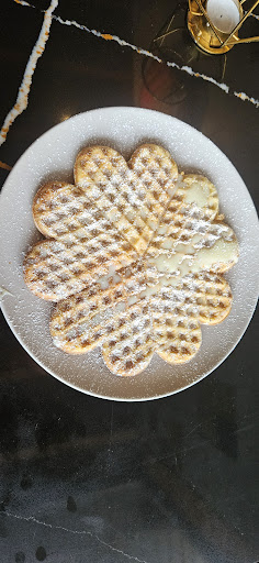 The plain waffle tasted good and looked nice..but was flat, more like a toasted pancake? Is it worth $8 before tax? No, in my opinion. $5 seemed reasonable for the waffle, but inflation as we know... The Raffaelo sauce for $1.50 extra was just a little drizzle over half the waffle. The shape of it was aesthetic if you're into that.