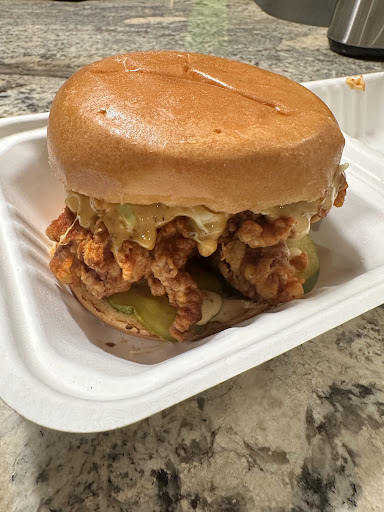 Read moreDrove by this place a few weeks ago and thought to finally try. Location is in an unassuming mall. Mainly a take out location with a few limited seating. The place has an interesting menu of whatâs called Nashville fried chicken. Chicken with a crunchy coating and then drizzled with a hot oily sauce. A few signature sandwiches and options for fried chicken bites and wings. I read the reviewed online to try the sandwiches. Prices are premium although I think everywhere is lately. Takes about 15 minutes to make as itâs fresh. Thatâs reassuring. I purchased a few options Hot honey chicken the Goat and the tandoori. Each selection has an option to add various degrees of hot sauce or spice to it. I tried the hot honey with the hottest spice level and while it had a nice heat it wasnât that spicy if you are looking for spice. The honey of course is sweet but the pickles made the overall sandwich a bit too sweet for me. I loved the crunch and it was a super filling sandwich. Itâs a hefty bite and I will say my bun collapsed so I probably would use something a bit more sturdy for a massive burger. I particularly liked the fries and whatver seasoning they put on it. I kept eating and eating it / was addictive. The Goat was similarly sized massive. Nice crunch from the topping. I chose medium heat and it was good nothing hot. Seems itâs a popular choice and I think itâs great. The tandoori I tried just to see a different sandwich. Chicken well seasoned not spicy but added the hottest sauce. Again not spicy even with the hot sauce but tasty burger. Overall massive way too big to eat in one go with fries. Combo probably was the best way to purchase this. Glad I tried it. Will try it again later! If you like a good fresh made chicken sandwich with a crunch this is the...