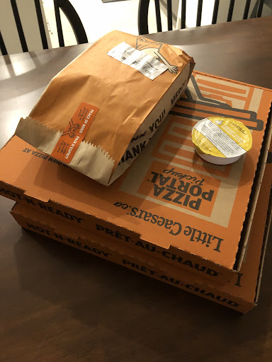 When we finally got our pizza, he showed it to us, it looked undercooked, but we were in a rush and took them. When we got home, they did seem undercooked and we had to re-cook them. The crazy bread we got was the most pathetic I've ever had from Little Caesers, there was no garlic on them, and barely any parmesan. It was basically just plain bread sticks.