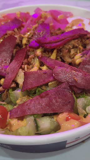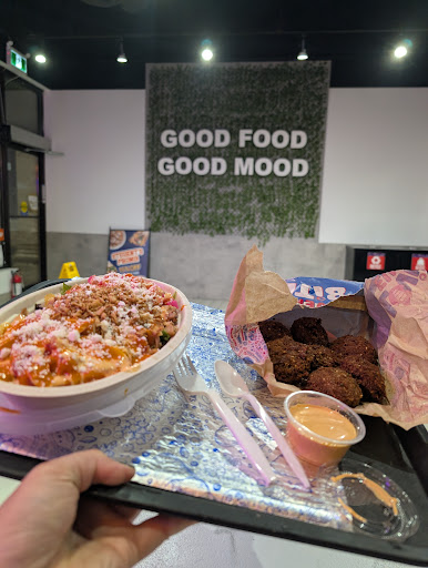 Regular Habibi Bowl - Chicken shawarma on rice with pita chips Regular Jamaican Jerk Bowl - Jerk chicken shawarma on a rice with pineapples, onions and tomatoes. The chicken was very well flavoured as were the onions. The rice tasted very nice too Regular Chicken Shawarma Bowl - Chicken shawarma on rice Chicken Shawarma Poutine - Poutine topped with chicken shawarma. The gravy was awesome and the shawarma topping was good. The cheese could have been more generous but all in all, this was a big hit Dozen Falafel - with a tahini dipping sauce. The star of the entire meal. I've never had falafel that was this fluffy and crispy.