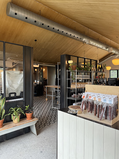 A scent of yeast blends with a gentle aroma of a wood fired oven as you arrive. The sun peers across the mountainside and fills the room with its warmth. On the other side, an opened kitchen offers a view on an organized and precise team, kneading life into grain and preparing wholesome foods.