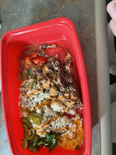 Here’s a list of was included: Slow-cooked spiced beef cherry tomatoes pickled jalapeños Rice