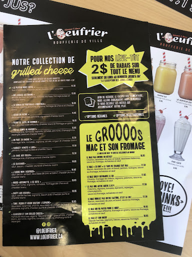 Read moreJe suis de la région métropolitaine de Montréal et mon expérience à l'œufrier de Plessiville était incroyable ! Je suis habitué aux longues minutes d'attente et du maque de personnel, mais ce cas si malgré le monde qui avait et le maque de personnel nous avons attendus que 10 minutes. La personne qui nous a servis était très serviable et très gentille. Il y a tellement de choix aux niveaux des boissons comme ceux des plats et tous avec des noms super originaux est marrant !