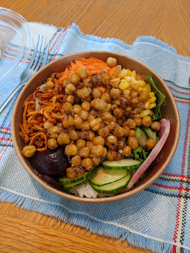 Read moreExcellent repas vegan disponibles ici, je recommande fortement! Avoir une option vegan a pohenegamook c'est complètement trippant!! Le bol bouddha était superbe, savoureux, remplissant, nourrissant avec des légumes frais et croquants. Mon chum a adorer le burger de tofu, nous avons tout les 2 adorer les smoothie banane/Choco. Seul commentaire/opinion personnel, je servirais le bol bouddha avec une sauce à base de tahini pour ajouter un petit crémeux plutôt que une sauce balsamique/huile, en plus ça ajouterais des protéines supplémentaires et ce serait une option "whole food" sans huiles transformés. :). Par contre c'était quand même merveilleux et une belle grande portion pour le prix. juste wow. Je vais revenir a chaque fois que je visite le coin.