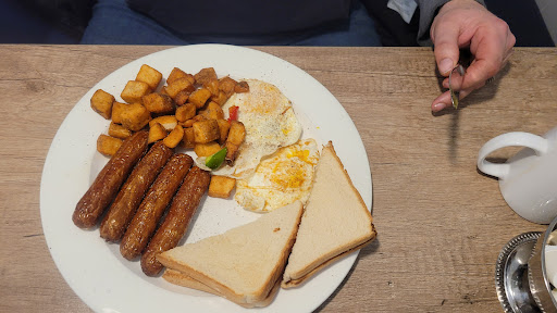 Read moreI was meeting a longtime friend for a quick bite after a full day of reuniting and fun over the previous 16 hours. I stayed at the next door hotel so it was an easy spot to meet. We were both famished. The first thing that was obvious. The place was understaffed for a Sunday morning. Every stage from getting a menu, initial drink, ordering, food coming and paying took far longer than it needed to. The food was very good and hit the spot. We both had the big breakfast. However there was a lack of attentiveness on tea and coffee refills. When it came time to pay there was an issue with the debit machine and it was left to us to figure it out. Staff didn’t seem to know what to do. Overall food hit the spot but the staff was slow and seemed to be on their own time table rather...