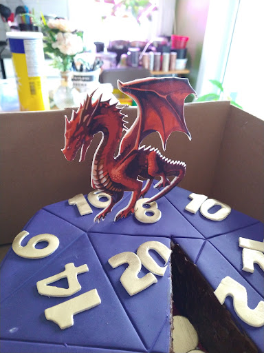 So, after thinking it over, I've decided to write this very detailed review of my February 2024 experience with Lafrenaie... I ordered a custom cake for the first time for my birthday. I picked Lafrenaie because it's my favourite bakery, and based on the pictures they have on their website, I was very confident that they could make my cake. It was supposed to be a Dungeons & Dragons-themed cake with a 3D red dragon on top. As this was my first custom cake order, and my drawing skills are lacking, I asked a friend to draw my cake design so that there would be no confusion...