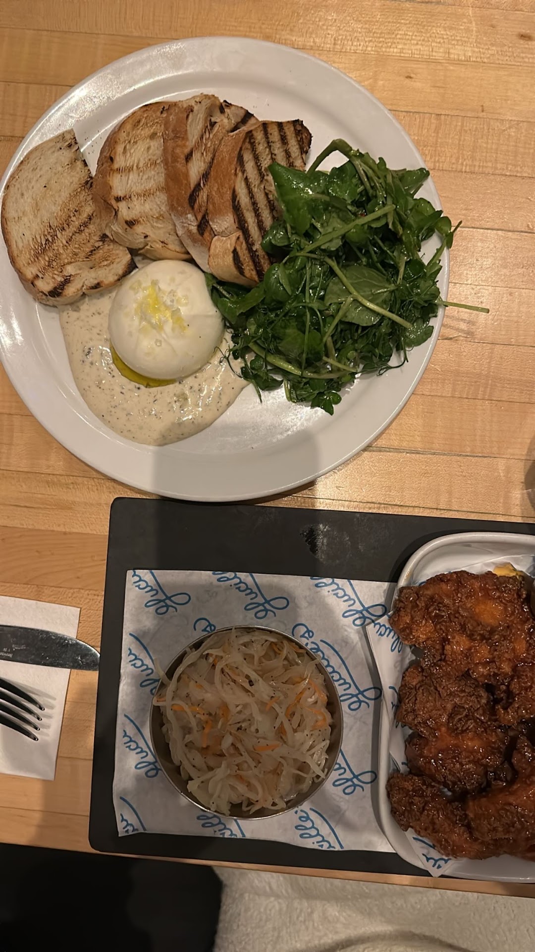 The restaurant was pretty empty at that time, I prefer eating early since I dislike crowds and enjoy a more quiet atmosphere. If you don't have a reservation you can easily find a table before 6PM. We were greeted right away, service was prompt and friendly. Our group tried two types of appetizers, the fried calamari and kentucky style fried chicken. Both were delicious, fresh, left us wanting more. I found the portion was pretty small compared to the price, for $19 the calamari was just enough for 2 people, not meant to share with a whole table unless you only get 1 or 2 bites each.