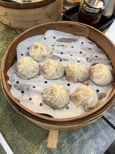 Cute, very casual locale, giving fast food restaurant vibes. I went for the very first time as this is my daughtersâ go-to dumpling place. I admit that the soup dumplings, were mouthwatering (literally) and delicious! You order the stuffing of your choice, and they are each filled with a broth, so that when you pop the dumpling into your mouth (you have to put the entire dumpling in) and bite down, you experience an explosion of flavours - so satisfying and so very delicious. They also offer fried dumplings that I did not have, but I believe those are more dry and do not contain the said broth so the bite is likely less exciting đ.