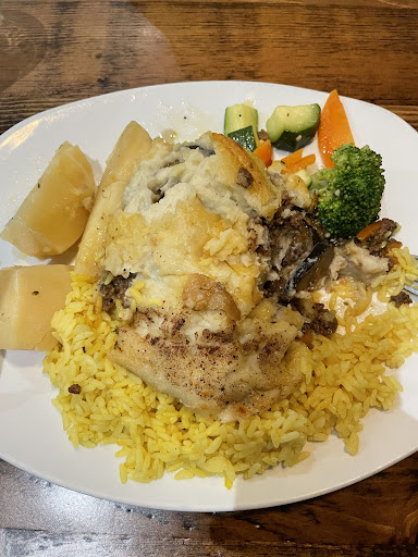 We came in a family of 4 (2 kids) for lunch, the ambiance is a bit stuffy, but ok, the place was nearly empty, so we figured we'll get quick service. The menu threw me off right away. One of those places serving everything under the moon - Italian specials for lunch, American fare with burgers and such, Indian food with curries, did find some Greek items as well.
