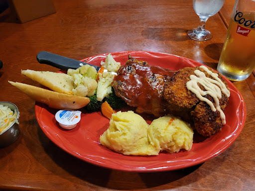 My husband ordered the Cajun chicken and ribs. The chicken is a flattened and breaded breast. He found the chicken to be under seasoned and did not taste like Cajun. The ribs were OK, he called them "pub quality". He would have preferred if they were finished in a bbq or open flame to give them a smokey flavor.