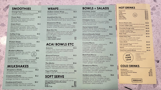 Read moreMy favourite items at Kokomo are the almond noodle salad, chickpea curry, bean burrito and vanilla soft serve. The golden laksa noodles, hemp caesar salad and coastal macro bowl are also fantastic choices. Some things to be aware of are that the acai is sweetened (I only like unsweetened but it's a matter of personal preference), and on rare occasions, the coconut turmeric broth for the golden laksa noodles is overly spicy (don't be put off from trying it again if this happens).
