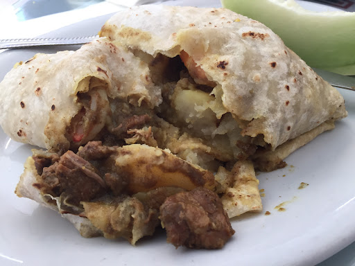 Trinidadian Roti is basically a wrap sandwich that's filled with curried meat, vegetable or seafood filling. There's dhalpourie roti or paratha roti (also known as bussup shut). Rehanah's Roti sells dhalpourie roti. Difference between dhalpourie and bussup shut? The explanation I've heard is that bussup shut is "busted up" into tattered pieces.