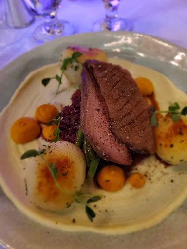 Read moreWent here with 3 other people. Nice room, with a sort of retro look to it. Our server was friendly and competent, quite pleasant. Our food: we started with the pate, with blueberry compote, walnuts, and crostini. The pate was good. The compote needed a little more acidity, and the crostini were perfect, thin, crisp, and light. I would've liked a couple more. Second appetizer was the prawns, "tempura battered with a crispy potato baton". This dish was a disaster. The 3 prawns were on a skewer and cooked as one piece, in a thick batter, more of a beer batter than tempura ( also, the skewer was left in the resulting mass. Guys, you need to warn customers about this). The prawns were completely overwhelmed. The "baton" was a steak-cut French fry, not crispy at all. Definitely do not order this. Mains: the birthday boy seemed to enjoy his venison, and was quite happy. Two others of our little party got the 16 hour braised beef. It was bland and quite dry. I ordered the duck breast with red cabbage, duck fat potatoes, parsnip puree, and green beans. The beans were great! The cabbage was very nice, the puree was good, although there was too much of it. The potatoes could have used more roasting to build a beautiful crust, and they were underseasoned. The duck skin, sadly, was not crispy and had a rubbery texture, and the meat was very dry. The whole dish was crying out for a sauce to tie it together. Presentation of the food was nice and attractive, although the plating had a very 90s feel to it, but hey, nothing wrong with that. On the whole, dinner was average, with hints that it could become great. Maybe it was just...
