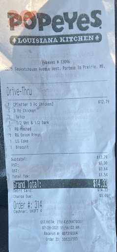 Read moreI knew that something is going to open in this beautiful portage la prairie, but never knew that it's going to be halal food, popeyes has the best food / menu in the city, I have been to thier other locations in Winnipeg, but Portage la prairieeeee is my favourite so far 💁♂️👌 Inside is very clean, stuff is professional, and even the owner is such a kind heart person, I have met him for the first time, he treated me like a family member, his kindness touched my heart! I would always go there, thier food is not greasy at all, I love thier Cole slaw and other chicken pieces 🐥it has beautiful taste, not very sugary or salty at all! I usually eat really healthy food, but when it comes to a place like this I have too many choices, Peace ✌️ keep up the good work 😋 I gave...