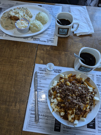Read more(*) Nous sommes allés chez Resto Gare de Portneuf (véritable nom: LES IMMEUBLES GRT 3000 INC. - étrange?!? suggère une non-spécialité en restauration?!?) pour dîner. Il était 10h45. J'ai demandé une pizza garnie 12 pouces (30,48 centimètres). La serveuse m'a informé qu'elle ne pouvait pas me servir de pizza, seulement un déjeuner. Drôle de réponse considérant l'heure... Je me suis donc rabattu sur des oeufs (froids) et du café (froid). Monique prétend avoir trouvé un cheveux dans son assiette, mais il se pourrait que ce soit le sien (je suis pragmaticien). Très déçu de mon expérience de nourriture...