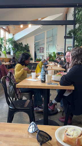 Nice staff, great space with high ceilings and lots of natural light, vegan options . Had the ham sandwich and garden salad. The portions were small, but the taste was exceptional and worth it! The sandwich is built on a biscuit, served piping hot with carved ham, a little honey muistard aioli and smoked cheddar. The salad had very fresh greens with ricotta and a tasty vinaigrette with hints of ginger. Very enjoyable food. Shared some almond chocolate cake for dessert. The cake was delicious and not too sweet, the almond flavour was baked throughout the cake. Two minor improvements I'd like to see would be some noise dampening and better coffee. Sorry, the coffee today was bitter and had no real flavor. I'm sure a small tweak will fix that. Maybe it was an off day. Would go back again. Looking forward to the salads later in the summer when the freshest produce...