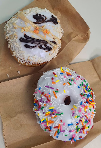 One was covered in a rainbow of sprinkles (because obviously, sprinkles make everything better), and the other had coconut, chocolate, AND a drizzle of something magical on top. Both were fresh, fluffy, and just the right amount of sweet without being overwhelming.