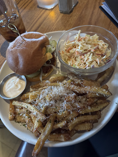 Read moreWe came here for a late lunch/early dinner. We were told we could seat ourselves so we did. It wasnât overly busy. The menu is a bit small but has great options and a good variety of happy hour items. The serving staff was really kind and attentive, we enjoyed our chat! There for the refills and we werenât kept waiting at all. Great recommendations. I had the crispy chicken (normal) and the truffle parm fries, and coleslaw.