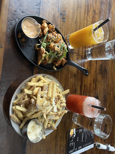 Read moreI was really excited to try this place as I like to support local and try new restaurants in town. The presentation of the food as you can see in the pictures looks beautiful, the salmon was awesome, the Calamari was tasty but noticed some random fries in the mix, that was kinda odd, the Steak in the salad was suppose to be cooked medium it was dry and bland, the seasonings in the salad was all over the place I don't know what flavour profile this salad was going for but a mash up of flavours that did not taste right. The avocado tasted funky, I sent it back and didn't order anything to replace it as I was instantly turned off from wanting to order anything else on the menu. My husband's burger was overcooked and the bacon was undercooked and there was literally calamari pieces mixed in his fries. This was suppose to be a nice anniversary dinner for us but was disappointing. They sat us outside when clearly there was only a couple tables of people inside and lots of tables. The picnic style tables outside were uncomfortable. I checked the reviews for this place before we went and it had glowing reviews, are you kidding me ? Well here is a real review, this place is not somewhere you want to go if you have some expectations on food quality. The server was absolutely pleasant and friendly, she is a great server. The music was loud to the point we had to raise our voices to order our food. Definitely not...