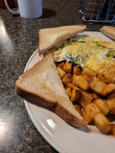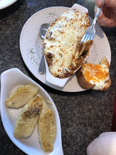 Read moreAfter going from restaurant to restaurant in Quesnel & Prince George and getting served measly little servings for soup of the day, my mouth fell open when I saw the humungous bowl of Cabbage Roll Soup I was served at Bon Voyage Restaurant. And an excellent soup it was, very tasty. Our server Bonnie was friendly, peppy, bouncy and a real hoot. I asked her if she wanted to be in the picture for the review and she said only if we were in the picture too, so that’s why Hector is in the one picture. Hector and I both got the Lasagna, Hector had the extra baked cheese on the garlic bread, and he really enjoyed it. I asked for the Greek potatoes instead of the bread, and they were very nicely done with good lemon flavour. Hector demolished his lasagna and hugely enjoyed it, but for some reason it didn’t quite do it for me even though technically there was nothing wrong with it. Bonnie cheerfully took it back and let me order something else instead. I got the Beef Souvlaki from the Seniors menu with extra Greek salad instead of the bread. The souvlaki arrived promptly, the Greek salad was nice and fresh, and the beef souvlaki was nicely charred on the outside and medium rare on the inside, perfectly seasoned. I split a serving of their house made cheesecake with Hector, it is smooth and creamy, just perfect. Altogether a great meal, and it’s so nice to have a restaurant that’s fine with you modifying orders for your preference and not having a problem if something just isn’t working for you. This is the second meal we’ve had here and they were both great. Decor was nice and open with your classic Greek look of sky blue and white, music wasn’t too loud so it was nice to be able to have a conversation. Altogether a very enjoyable restaurant...