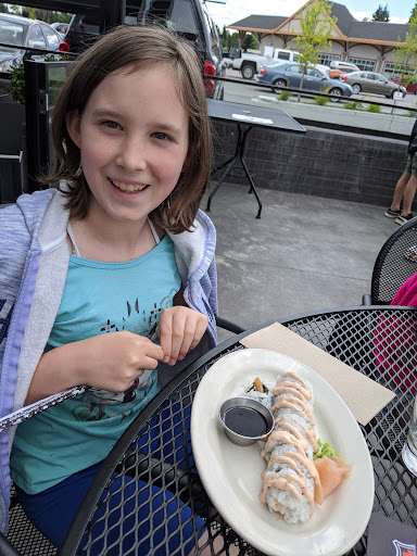 Hector really enjoy the loaded nachos which is definitely big enough for a meal, especially with the extra ground beef on top, Even had some to take home for tomorrow... I took a picture of Sydney with our takeout box, Showing her great smile, and and the great and Van send...