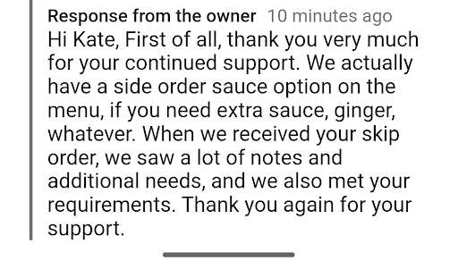 I have been a loyal customer for several years, but unfortunately, over the past year, the quality of both the food and service has significantly declined. After much consideration, I’ve changed my review from 5 stars to 1, and I regret to inform you that I will no longer be recommending or supporting your restaurant.